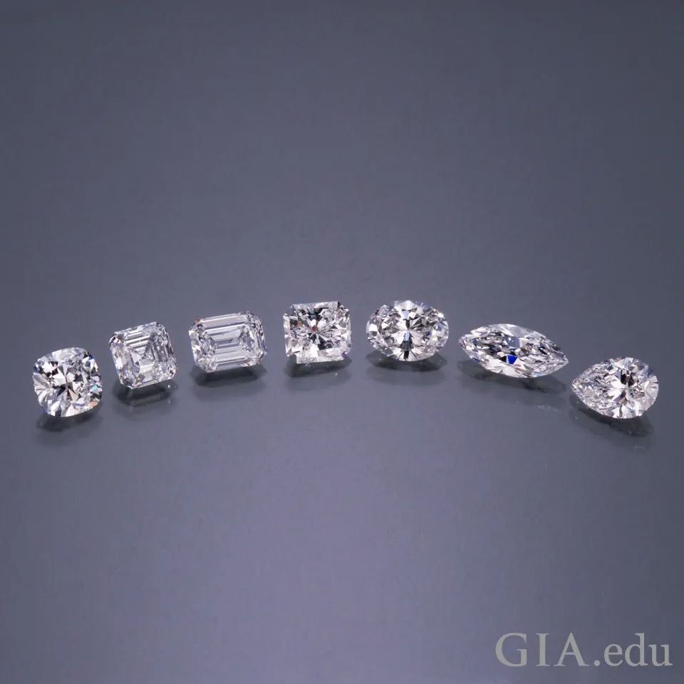 这里有六颗不同形状的 1.25 克拉钻石,肉眼可见的长形钻石比方形或圆形钻石更显大,所以同等克拉数的钻石如果想要显大,椭圆形、榄尖形和梨形可能是更好的选择,你觉得呢?